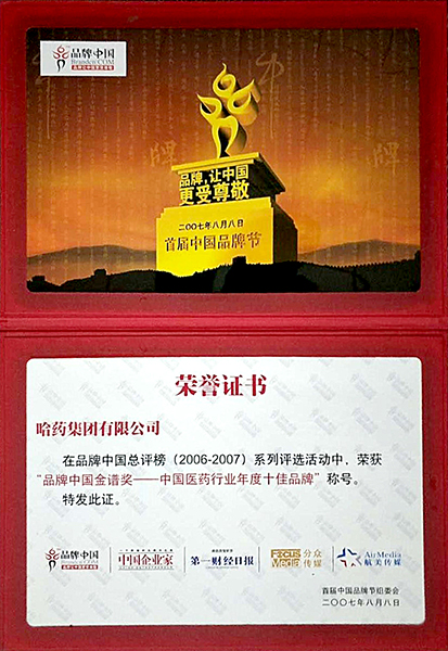 品牌中國金譜獎——中國醫(yī)藥行業(yè)年度十佳品牌