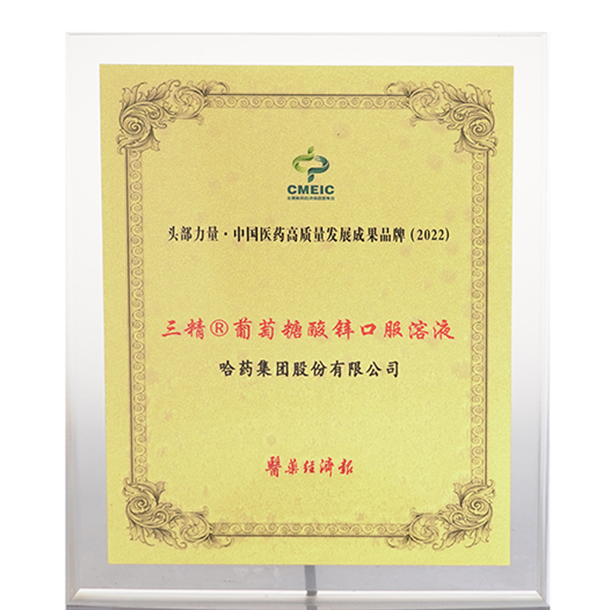 2022頭部力量·中國醫(yī)藥高質(zhì)量發(fā)展成果品牌葡萄糖酸鋅