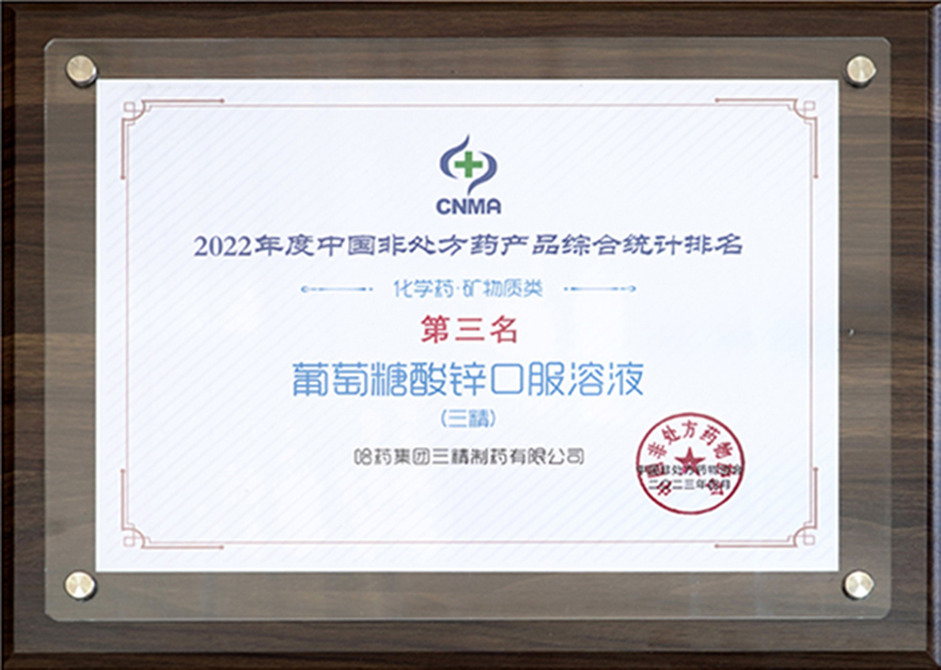 2022年度中國非處方藥產(chǎn)品綜合統(tǒng)計排名第三名葡萄糖酸鋅