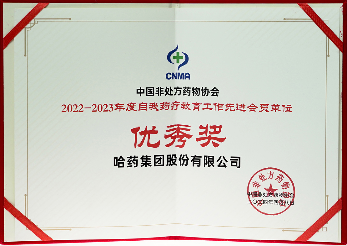中國非處方藥物協(xié)會2022-2023年度自我藥療教育工作先進會員單位2