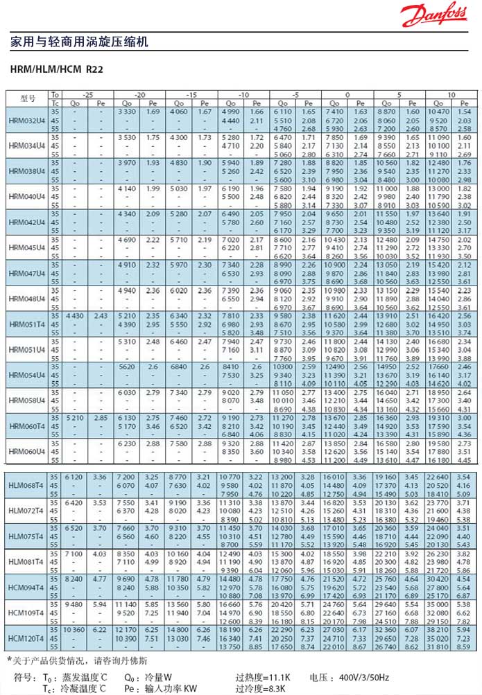 丹佛斯HRP/HLP/HCP (R407C) 2.5HP-10HP
